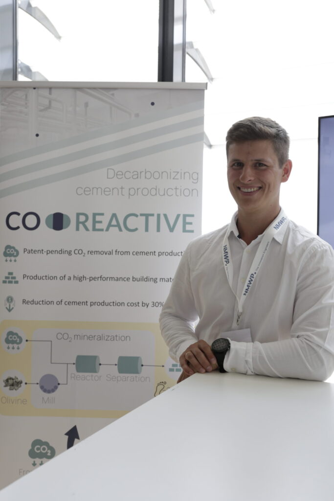 Ein Drittel der weltweiten CO2-Emissionen wird von der Bau- und Gebäudeindustrie verursacht. Beispielsweise wird bei der Herstellung des Grundstoffs Zement mehr CO2 freigesetzt als der gesamte weltweite Flugverkehr verursacht. Das Spin-off Co-reactive der RWTH Aachen hat deshalb ein Verfahren zur Dekarbonisierung von Prozessen in der Zementindustrie entwickelt. Es beruht darauf, dass der bei der Herstellung von Zement frei werdende Kohlenstoff in dem Mineral Olivin gespeichert und als emissionsarmer Rohstoff für grünen Zement weiterverwendet wird.