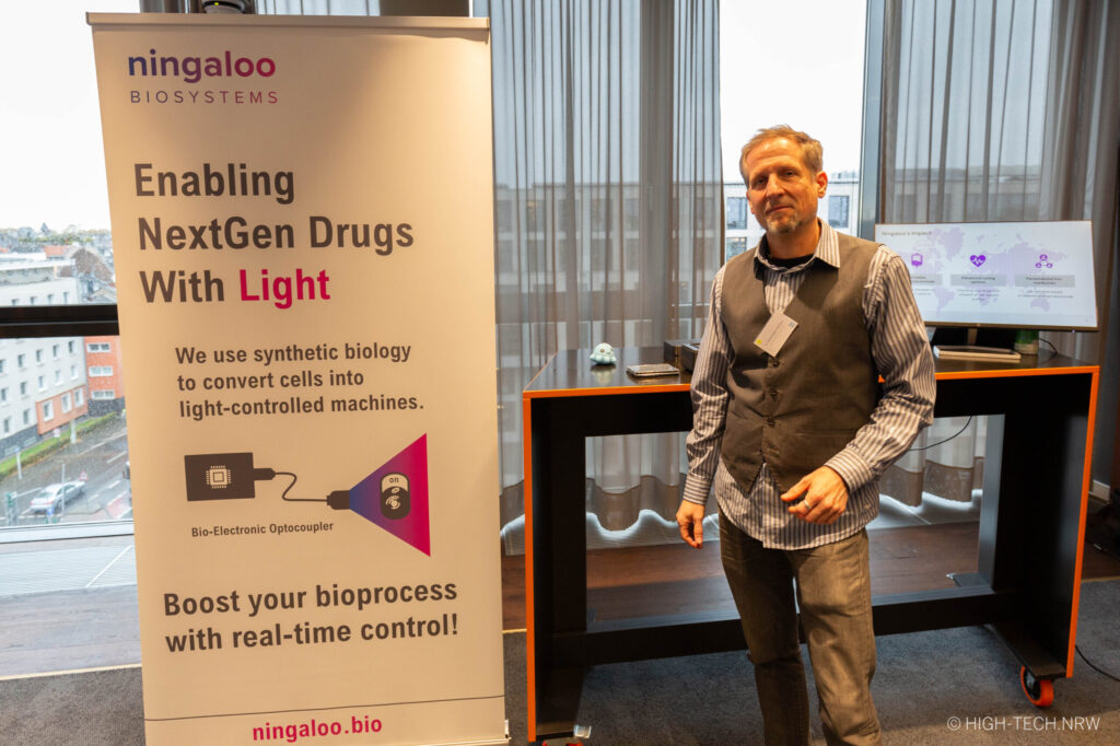 Viele neu entwickelte Medikamente geben Krebs oder Autoimmunerkrankungen sind unglaublich teuer in der Herstellung. Das liegt vor allem daran, dass die Prozesse, insbesondere in den Bioreaktoren, in denen diese Wirkstoffe hergestellt werden, noch sehr ineffizient sind. Das Biotech-Startup ningaloo biosystems entwickelt Produkte, die Biopharma-Hersteller in die Lage versetzen, effizienter und standardisierter zu produzieren und durch höhere Ausbeuten ihre derzeit noch größtenteils prohibitiven Kosten zu reduzieren. ningaloo biosystems Plattform-Technologie zur „Opto-Bioproduktion“ basiert auf Erkenntnissen der Optogenetik und ermöglicht es, erstmals die Prozesse im Bioreaktor mit Hilfe von Licht in Echtzeit zu steuern, dadurch Ressourcen einzusparen und letztlich die neuartigen Biopharmazeutika für Millionen von Patienten erschwinglich zu machen.