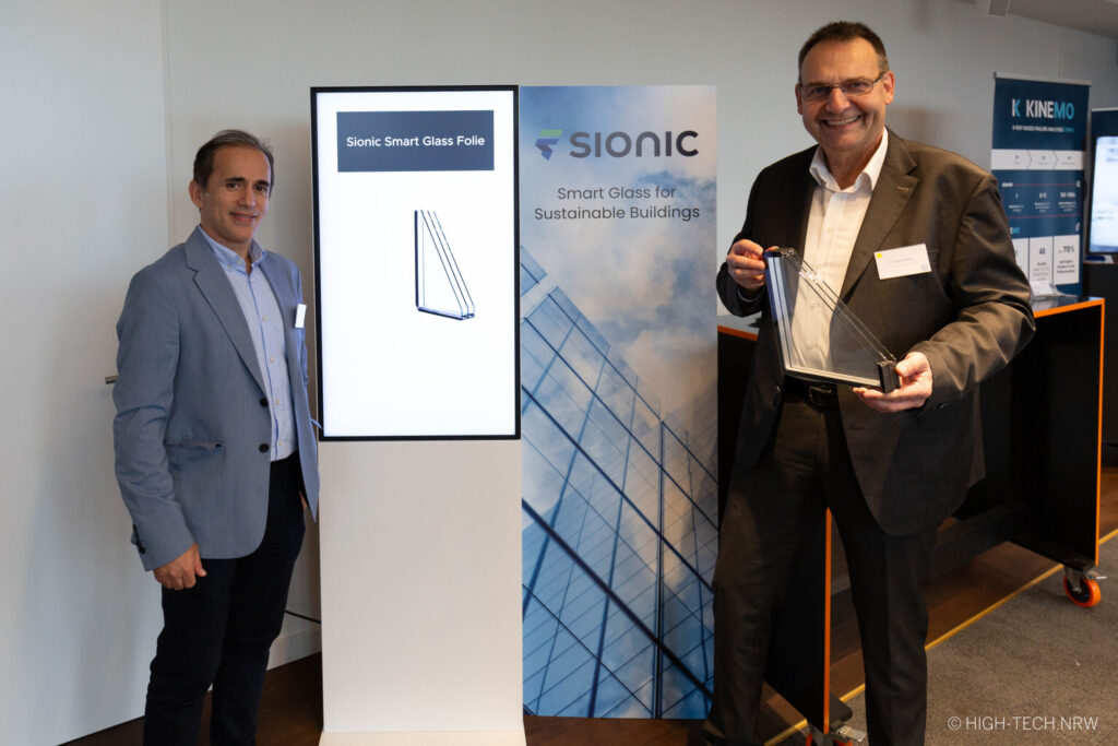 Intelligentes Glas ermöglicht die Schaltung der Transmissionseigenschaften von Fenstern und Glasflächen. Sionic Smart Glass entwickelt, fertigt und vermarktet innovative, visionäre Fensterkonzepte auf der Basis mikrooptischer, elektrochromer Folien. Im elektrochromen Glas sind High-Tech Folien integriert, die in einem kosteneffizienten Rolle-zu-Rolle-Verfahren auf nanotechnologischer Basis hergestellt und auf große Flächen skaliert werden. Durch Smart Glass wird der ökologische Fußabdruck reduziert. Pro Jahr können weltweit mehr als 100 Millionen Tonnen an CO2 Emissionen eingespart werden. Gleichzeitig werden mit der Smart Glass Technologie erhebliche Energieeinsparungen in Gebäuden erzielt.